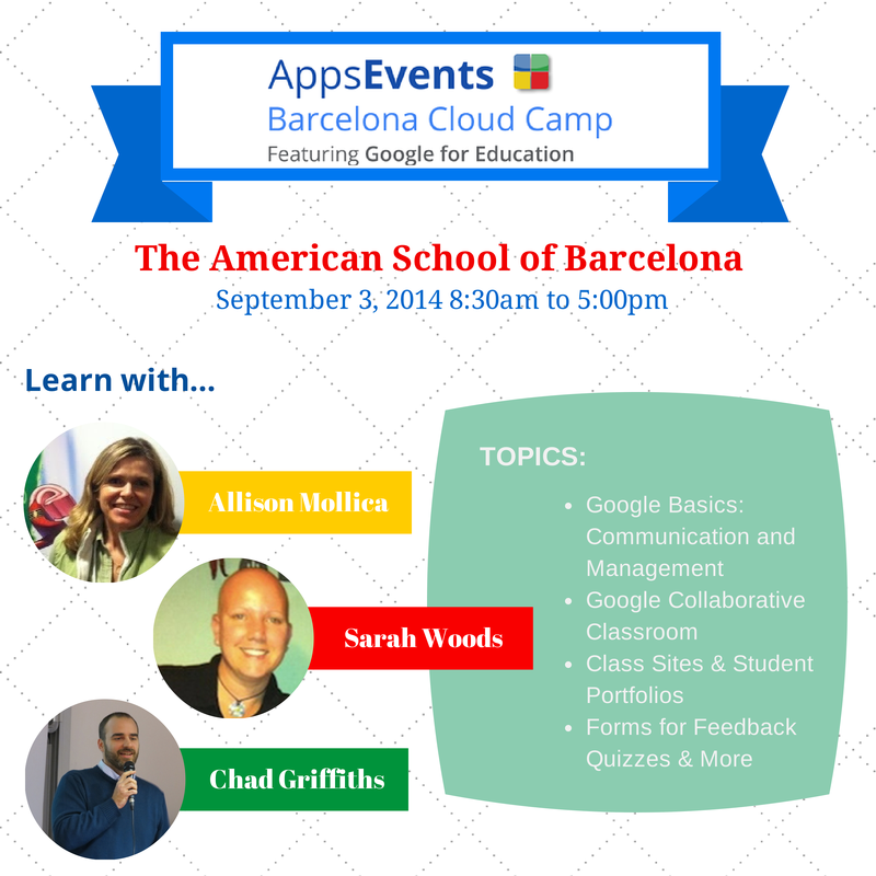 For those new to Google Apps or somewhat experienced users, we invite you to join us for the Barcelona Google Cloud Camp to be held at American School of Barcelona this coming September 3.